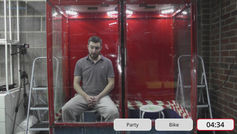 James has five minutes to avoid saying the mystery word. If he avoids saying the mystery word, he can walk away from tank clean. However, as soon as he says the mystery word, 120 litres of thick green gunge descend.